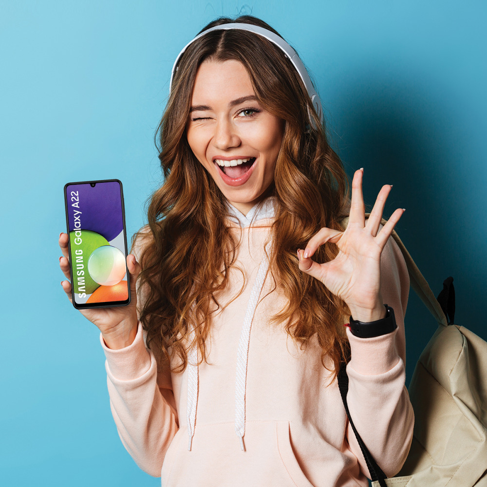 Samsung Galaxy A22 5G smarttelefon har 5G-forbindelse – og er et kupp for deg som ønsker en solid og innovativ telefon med fantastiske kamera-muligheter, stor skjermflate og meget god batterilevetid!